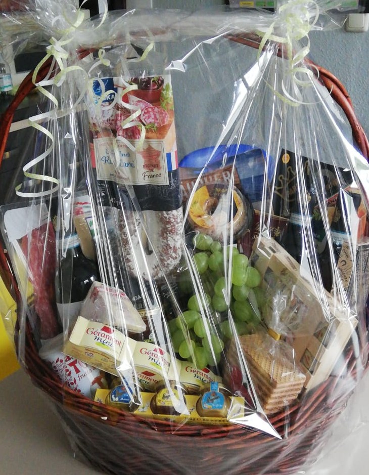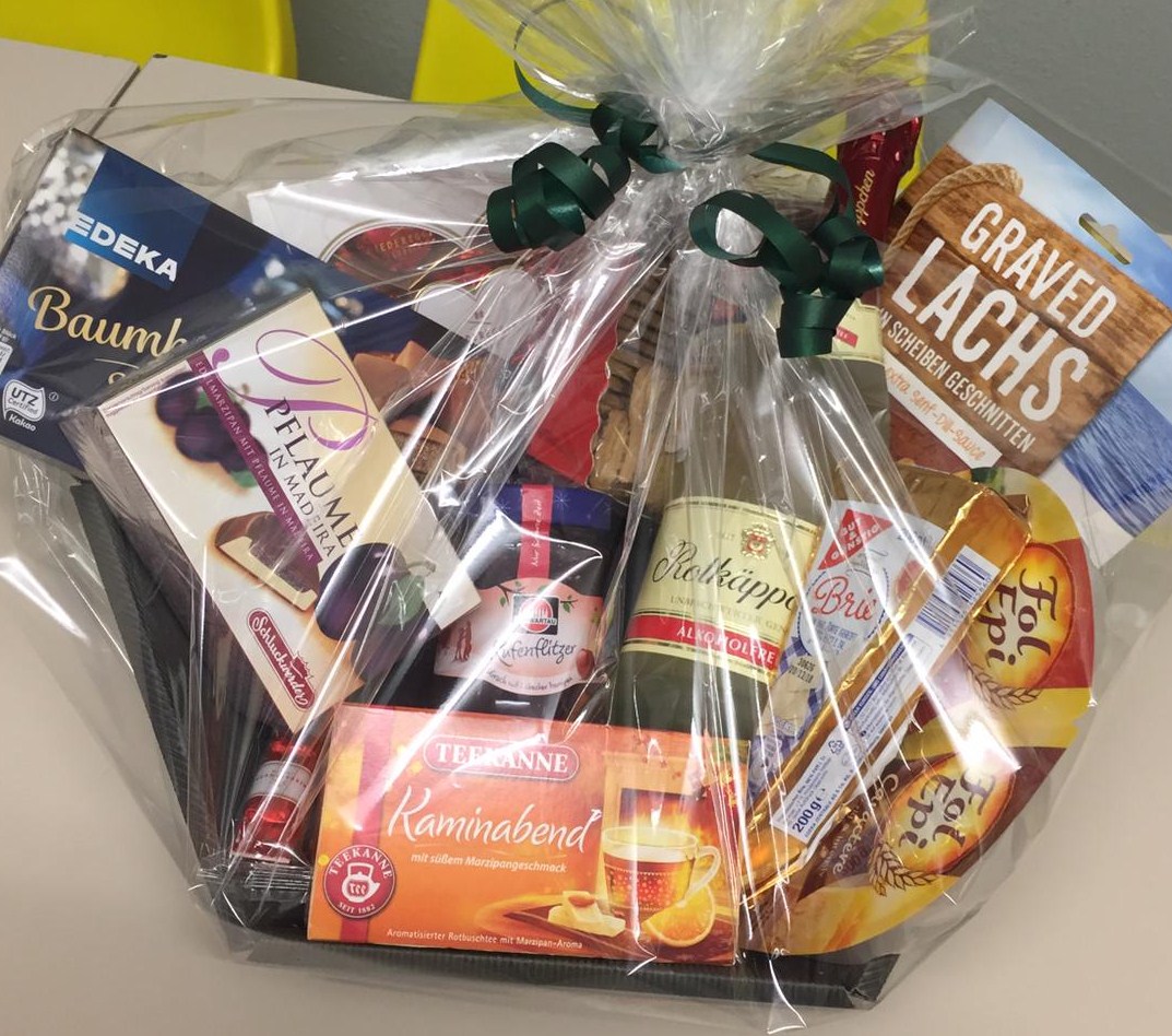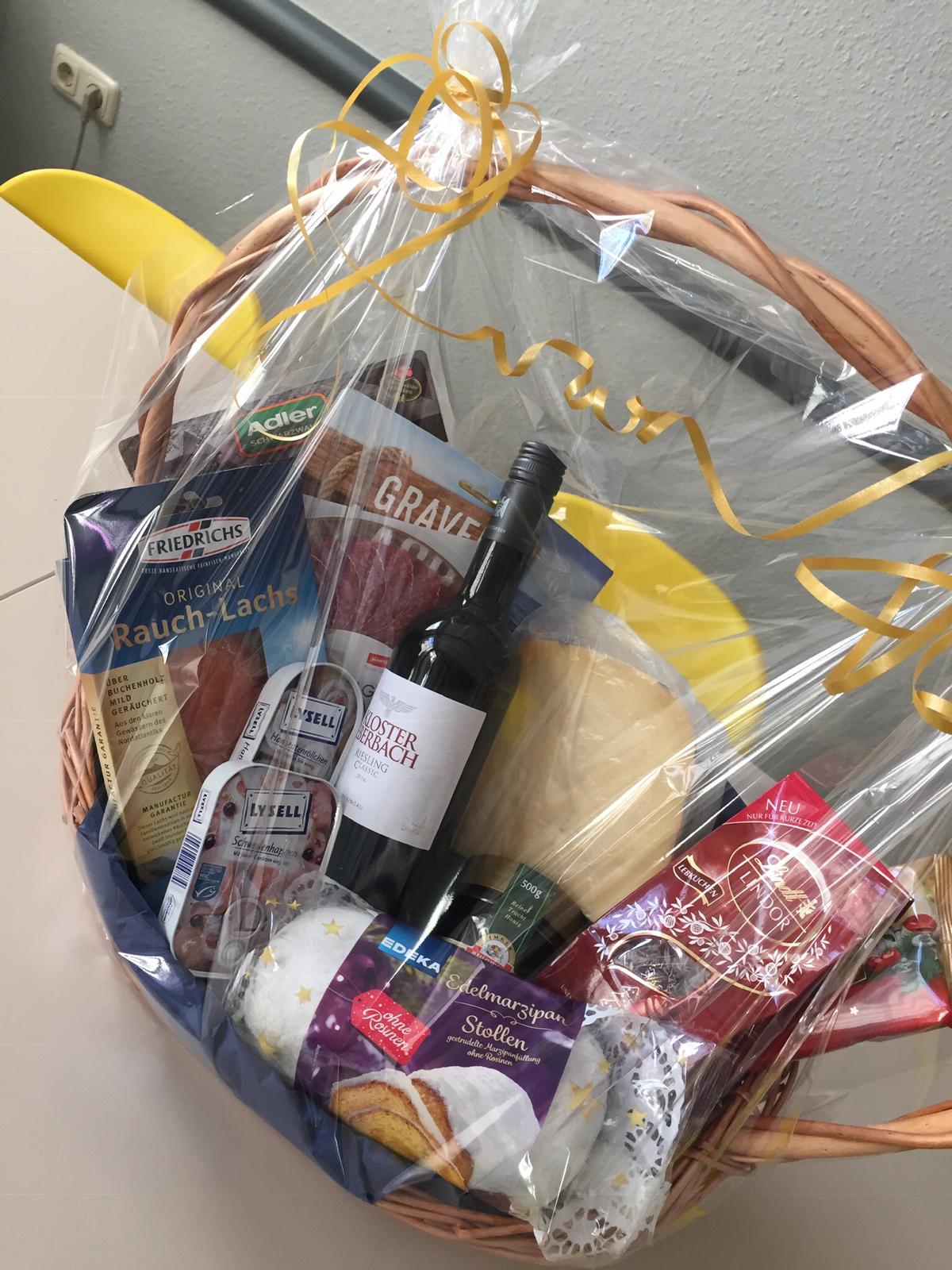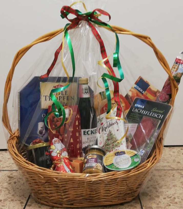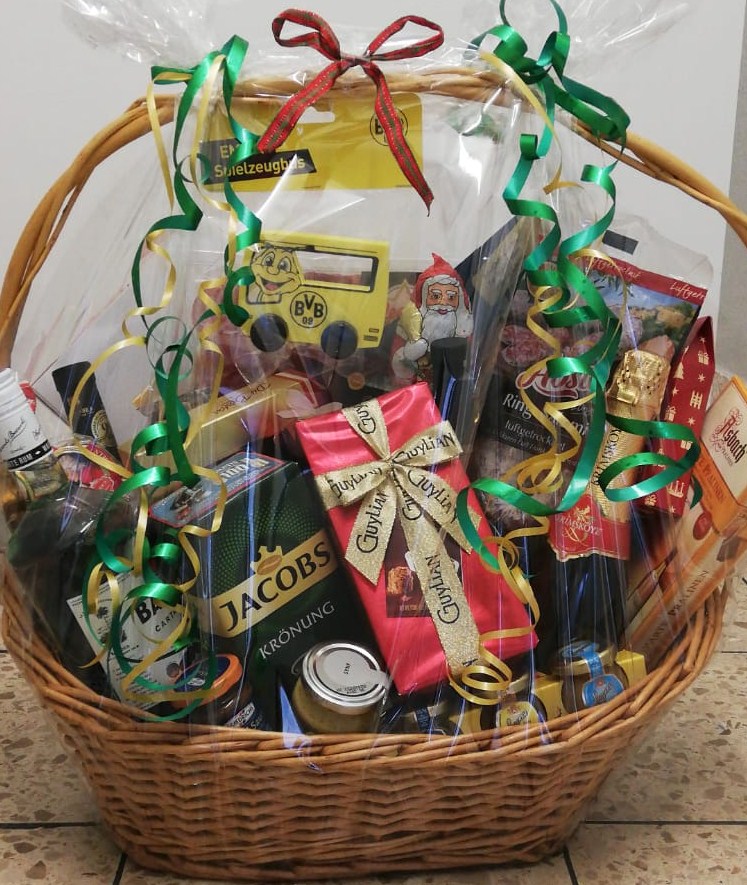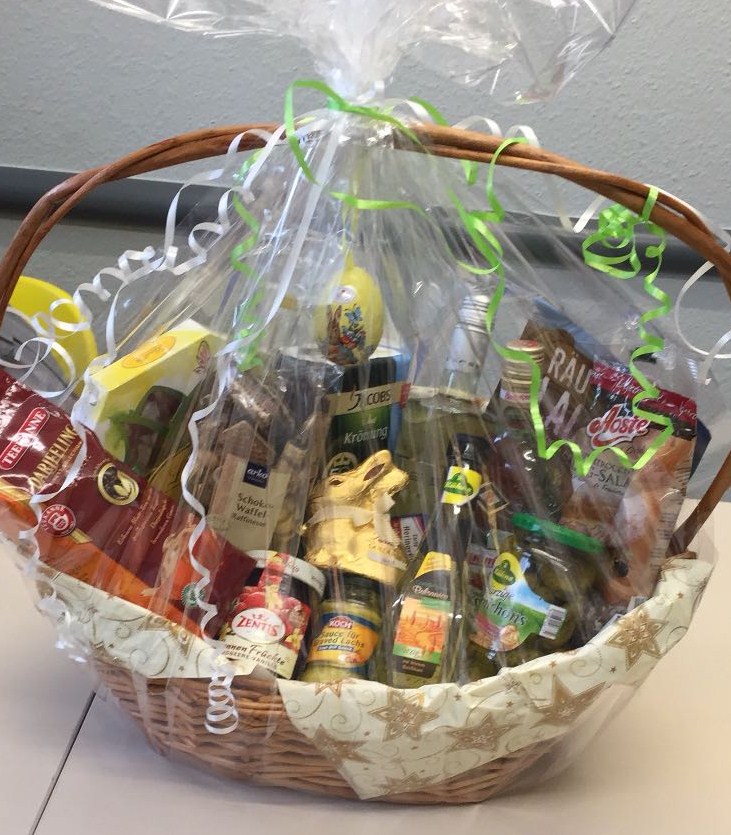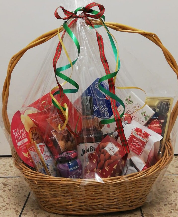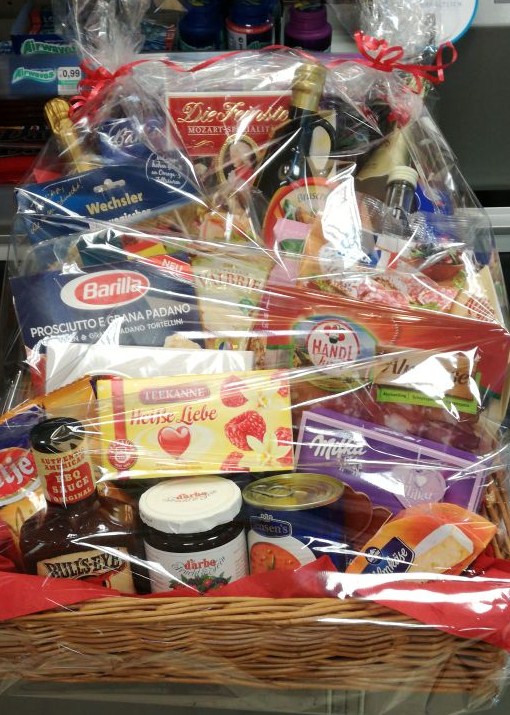 Sie nennen uns ein Thema, um das sich der Inhalt handeln soll und wir suchen aus unserem Sortiment entsprechende Produkte zusammen und dekorieren den Korb. Sie können ihn dann fix und fertig in Geschenkfolie verpackt bei uns abholen.
